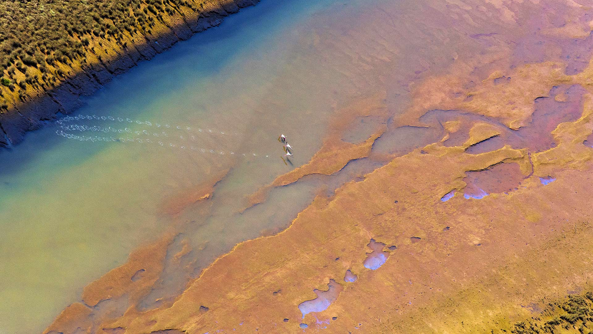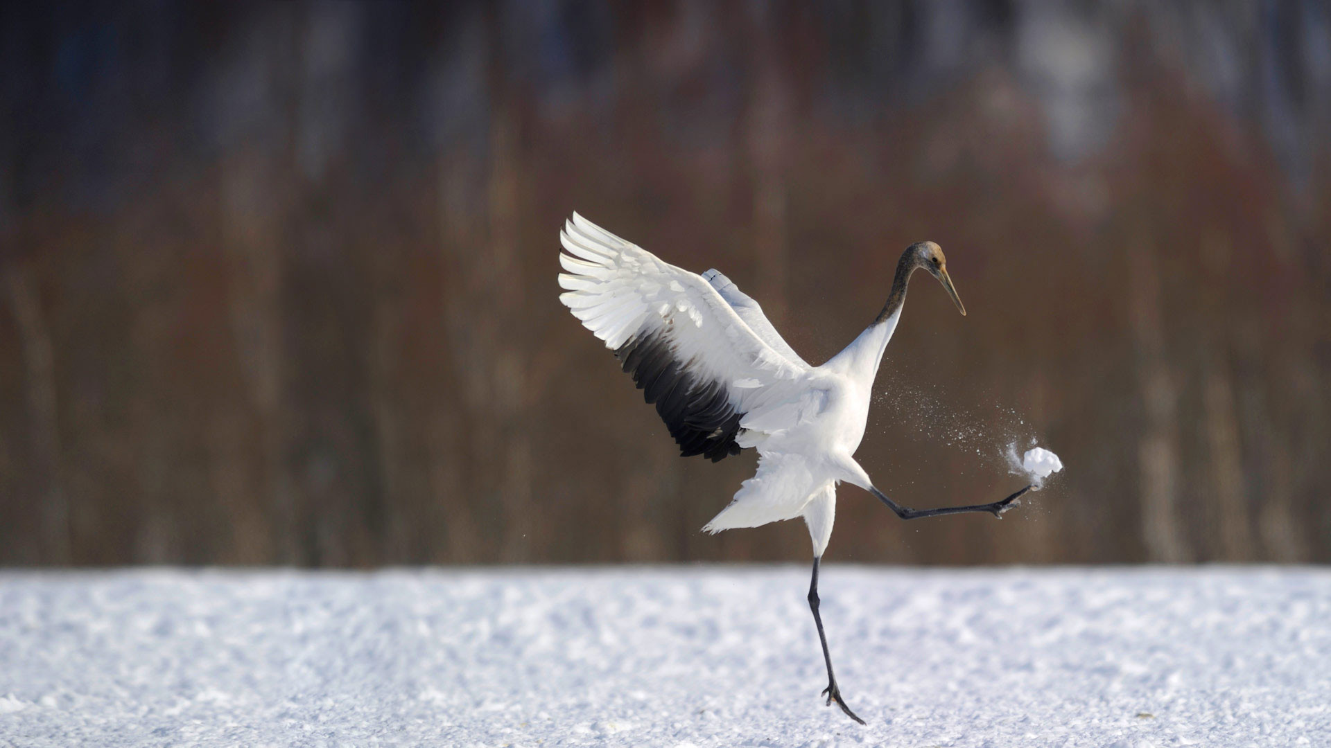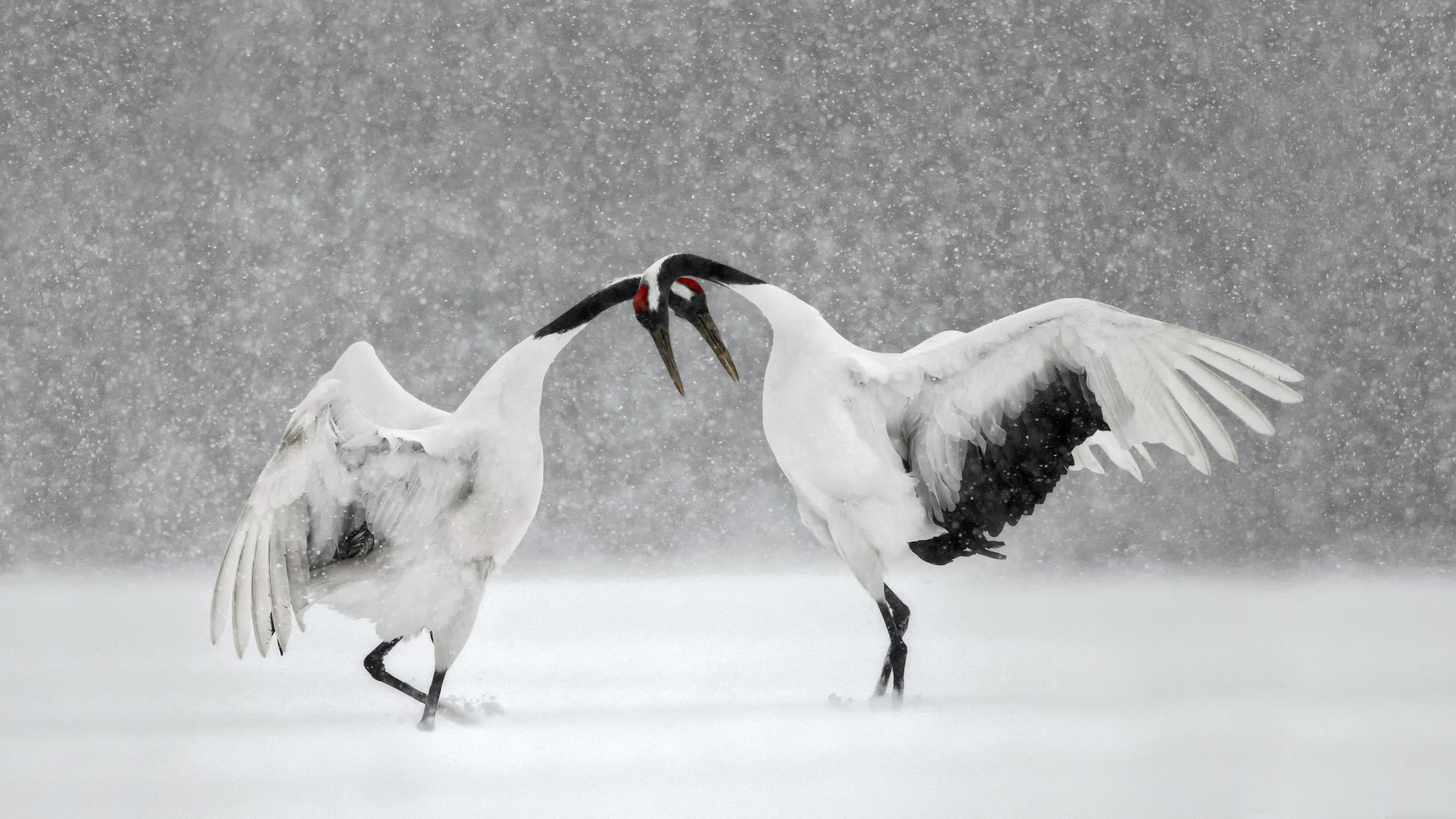 Red-crowned cranes (Grus japonensis) in Hokkaido, which is Japan's northernmost main island, and its coldest region.